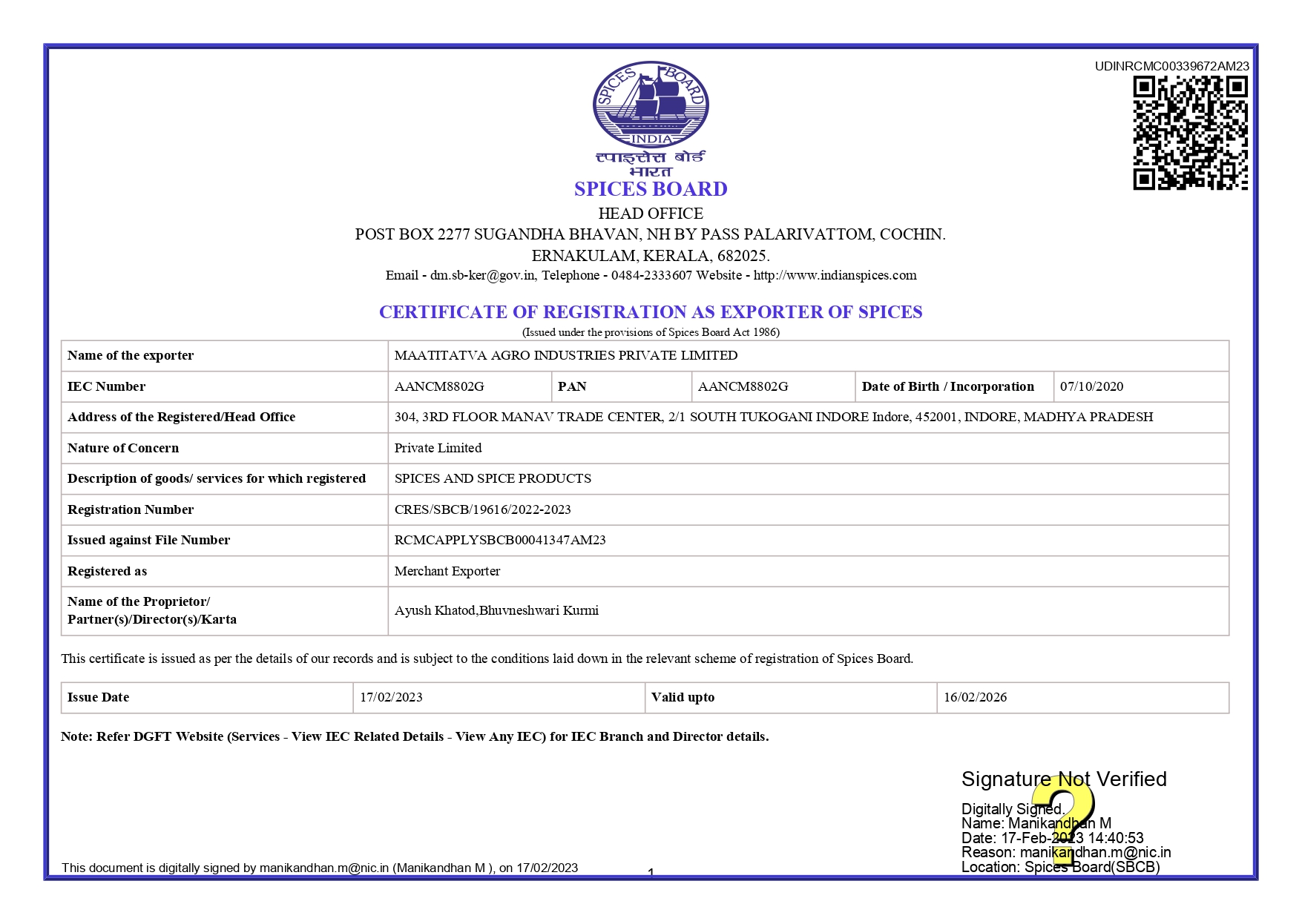 Maintain compliance with organic standards under different schemes. Customer satisfaction. Contribution to local economy by fair price policy to our farmers. Widening network of companies that are working in Herbal industry. Promotion of Indian Herbal Spices & products at national/international level