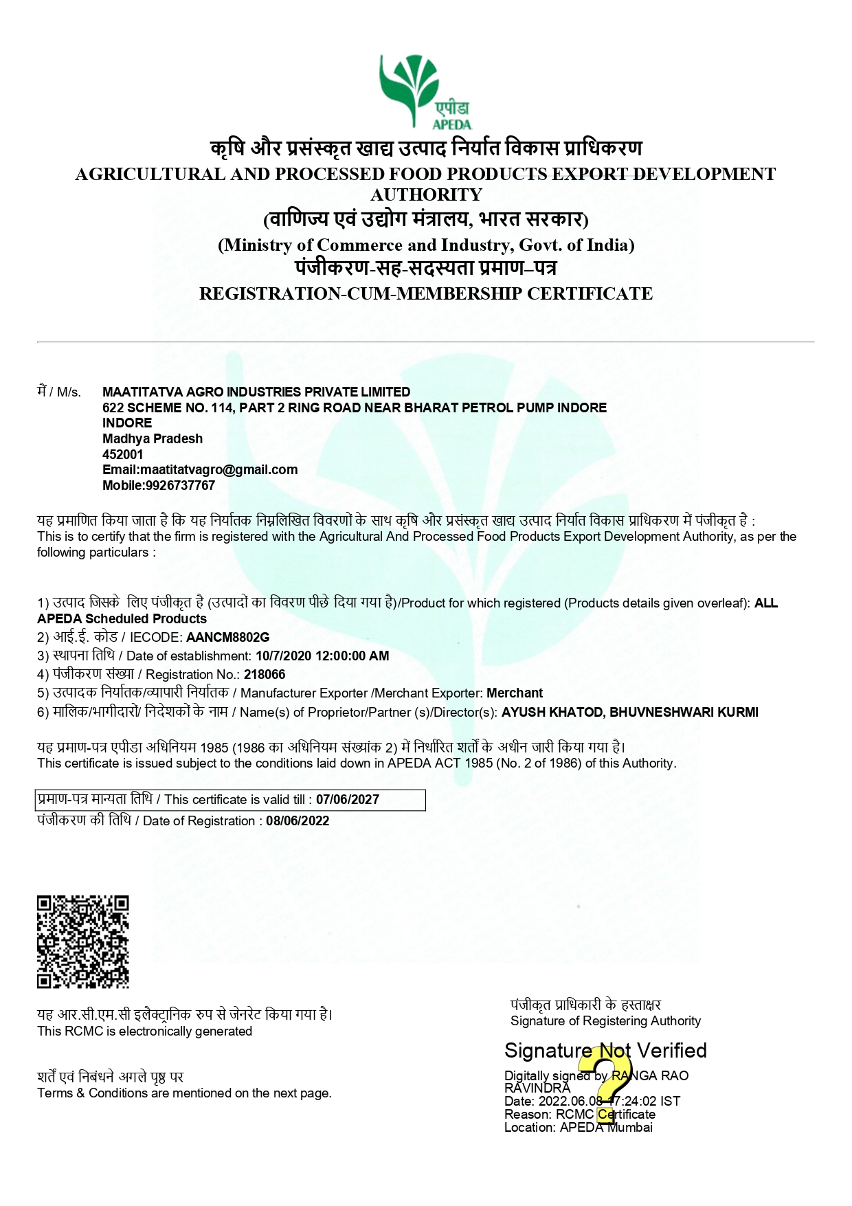 Maati Tatva Agro Industries Pvt ltd. means absolute commitment to quality. All our products are 99.99% pure and 100% organic in nature. We are from among India’s leading companies operating in certified Ayurvedic, Medicinal and Herbal products’ industry.
