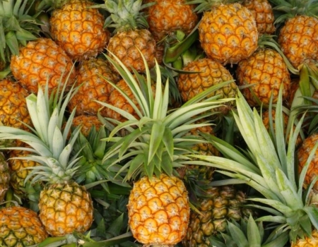 Pineapple is tropical fruit. It is a good source of Vitamin A and B and rich in Vitamin C and calcium. It contains phosphorus and iron. The fruit contains a special enzyme called ‘Bromelin’ which digests protein. Fruit is used for table purpose, preparations of juices, slices, tit bits, squash, jam, mixed jam, candy etc. Dried waste after extraction (pomace) is valuable cattle feed. Other byproducts are alcohol, calcium citrate, citric acid and vinegar. Leaves of pineapple are used for fibre preparation. Fruit of pineapple is botanically called sorosis. Botanical name of pineapple is Ananas comosus and family is Bromeliaceae.