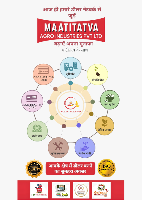 Maati Tatva Agro Industries Pvt ltd. means absolute commitment to quality. All our products are 99.99% pure and 100% organic in nature. We are from among India’s leading companies operating in certified Ayurvedic, Medicinal and Herbal products’ industry.