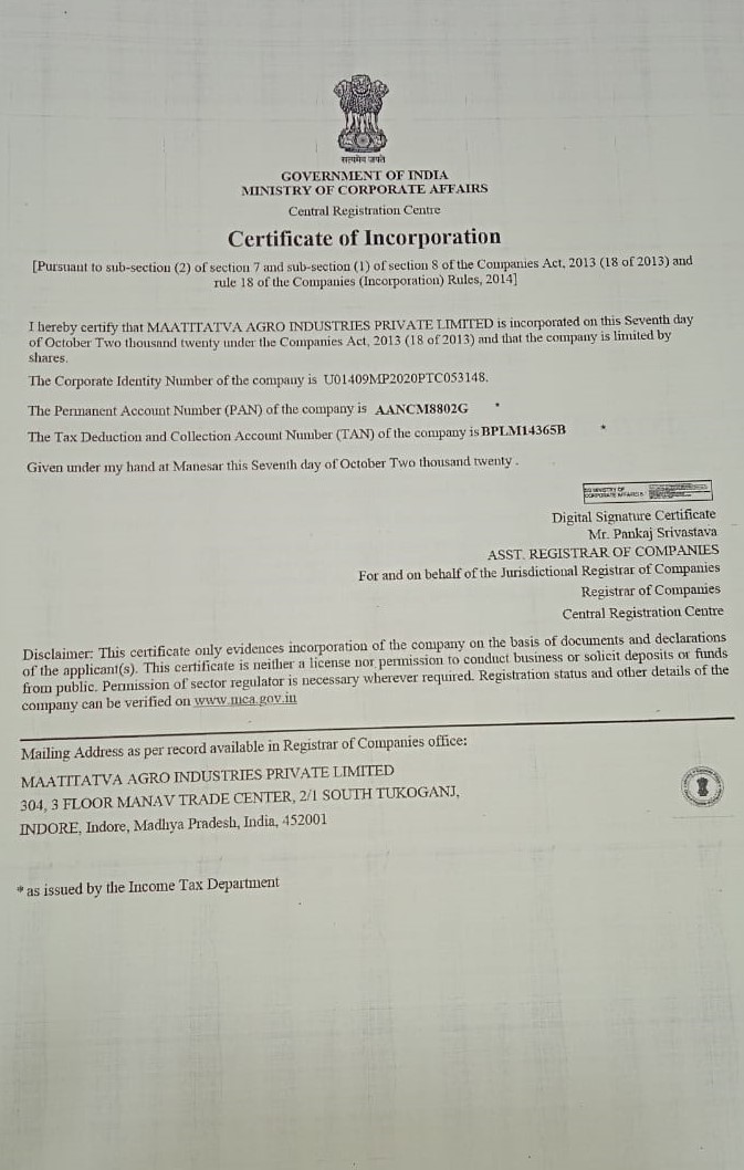 The history of Maati Tatva agro industry pvt ltd goes back to year 2018 when only a couple of farmers joined us and now there are more than 6000 farmers working with us directly or indirectly in Herbal industry; our own Group have nearly 2500 certified Herbal & Medicinal farmers and another 1000 farmers are under conversion who are actually in their either 2nd or 3rd year of certification process. Our Farmer Group are certified by various government organizations.